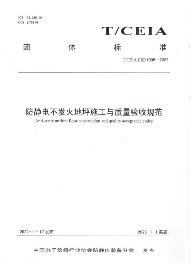 t/ceia esd1005-2022《防静电不发火地坪施工与质量验收规范》