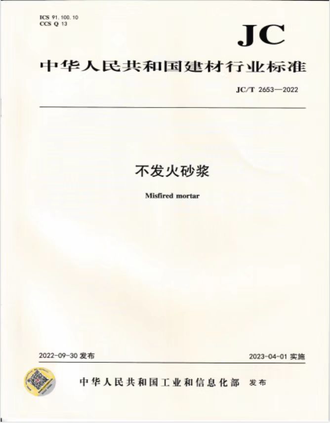 jc/t2653-2022《不发火砂浆》